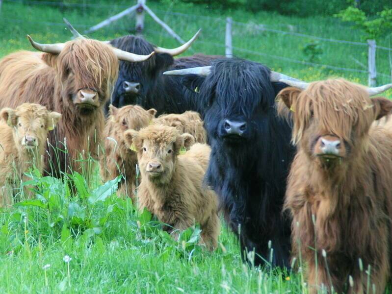 Hier bieten wir Wildprodukte aus dem eigenen Wald sowie Produkte von schottischen Hochlandrindern, die auf den Wiesen um den Hof das ganze Jahr über draußen sind und ohne Kraftfutter oder ähnliches, natürlich aufwachsen und auf der Weide stressfrei geschlachtet werden.